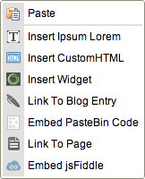 Also, you can right-click in the editing area and choose “Embed jsFiddle”.