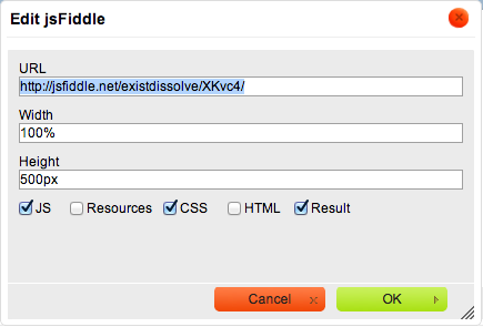 After acting via the toolbar icon OR the context menu, you’ll see a simple wizard for inserting fiddles.