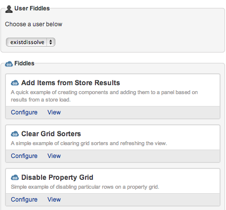 In this wizard, you can select a user from the selection list (assuming you’ve saved some users in the config). Once you’ve selected a user, their available public fiddles will displayed.